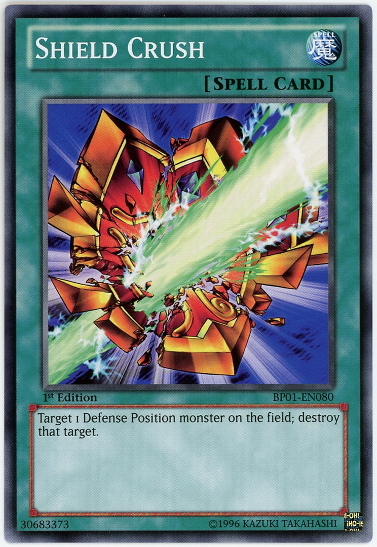 - BP01-EN080 Shield Crush : Common 1st Edition Mint YuGiOh Card