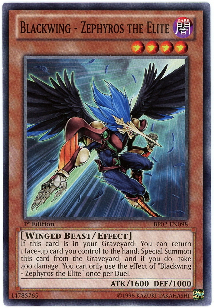 - BP02-EN098 Blackwing - Zephyros the Elite : Mosaic Rare 1st Edition Mint YuGiOh Card