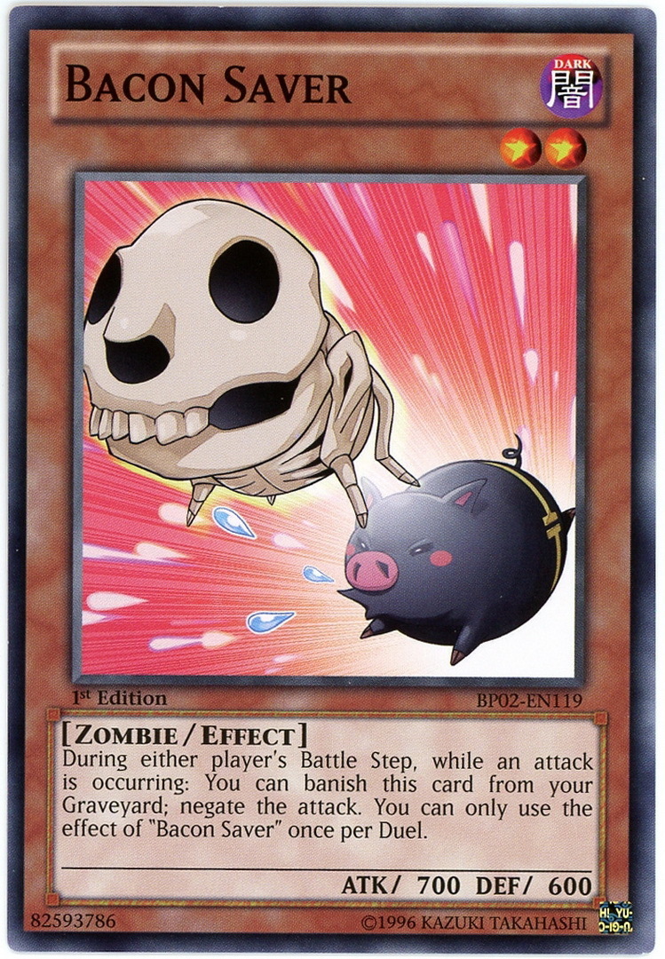 - BP02-EN119 Bacon Saver : Common 1st Edition Mint YuGiOh Card