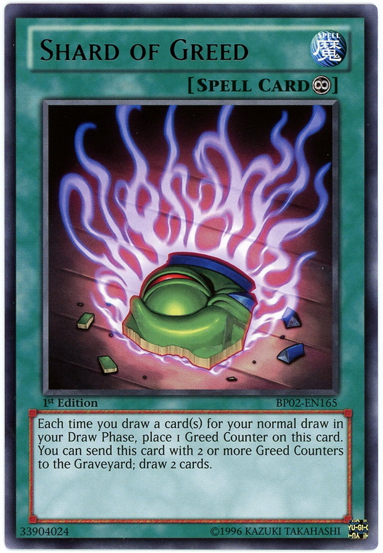 - BP02-EN165 Shard of Greed : Mosaic Rare 1st Edition Mint YuGiOh Card