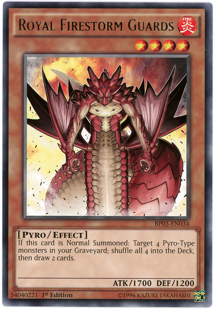 - BP03-EN034 Royal Firestorm Guards : Rare 1st Edition Mint YuGiOh Card