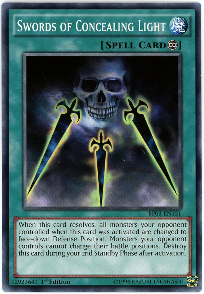 - BP03-EN151 Swords of Concealing Light : Shatterfoil Rare 1st Edition Mint YuGiOh Card