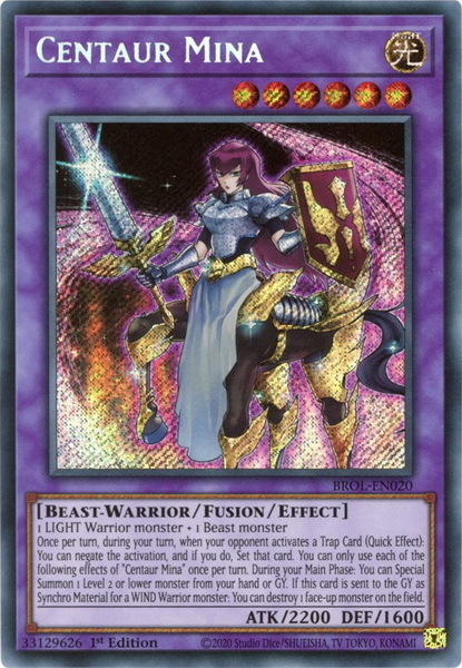 - BROL-EN020 Centaur Mina Secret Rare 1st Edition Mint YuGiOh Card