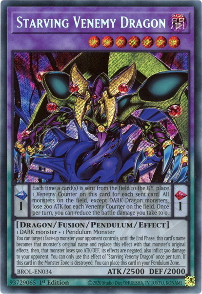 - BROL-EN034 Starving Venemy Dragon Secret Rare 1st Edition Mint YuGiOh Card