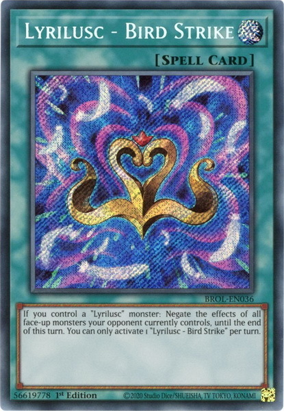 - BROL-EN036 Lyrilusc - Bird Strike Secret Rare 1st Edition Mint YuGiOh Card