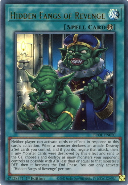 - BROL-EN050 Hidden Fangs of Revenge Ultra Rare 1st Edition Mint YuGiOh Card
