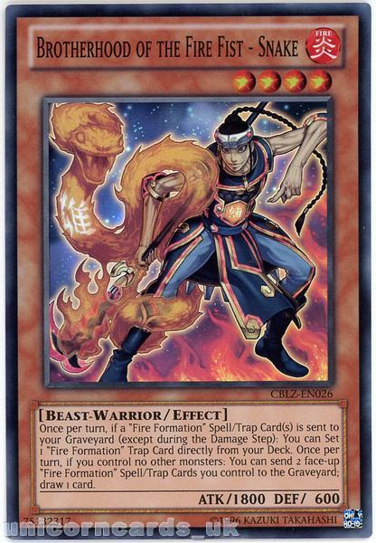 - CBLZ-EN026 Brotherhood of the Fire Fist - Snake Super Rare Unlimited Edition Mint YuGiOh Card
