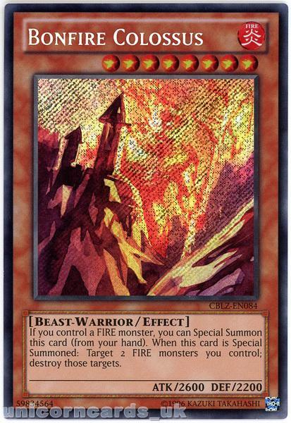 - CBLZ-EN084 Bonfire Colossus Secret Rare Unlimited Edition Mint YuGiOh Card