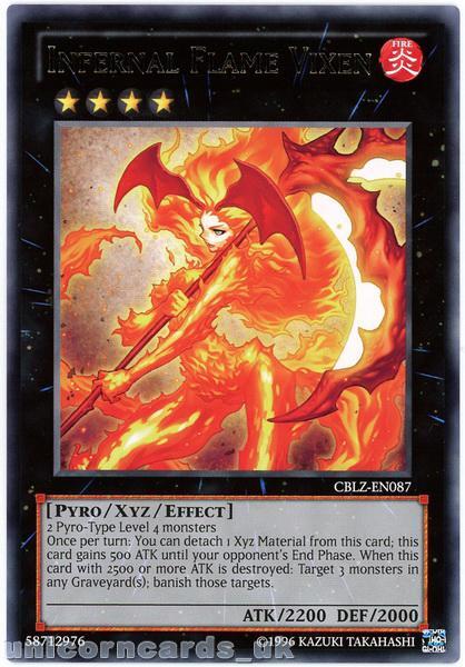 - CBLZ-EN087 Infernal Flame Vixen Rare Unlimited Edition Mint YuGiOh Card