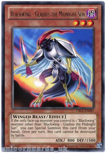 - CBLZ-EN095 Blackwing - Gladius the Midnight Sun Rare Unlimited Edition Mint YuGiOh Card
