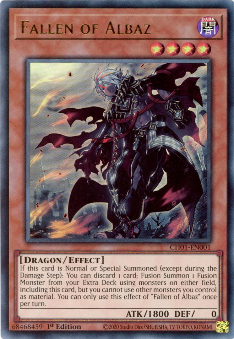 - CH01-EN001 Fallen of Albaz : Ultra Rare 1st Edition Mint YuGiOh Card