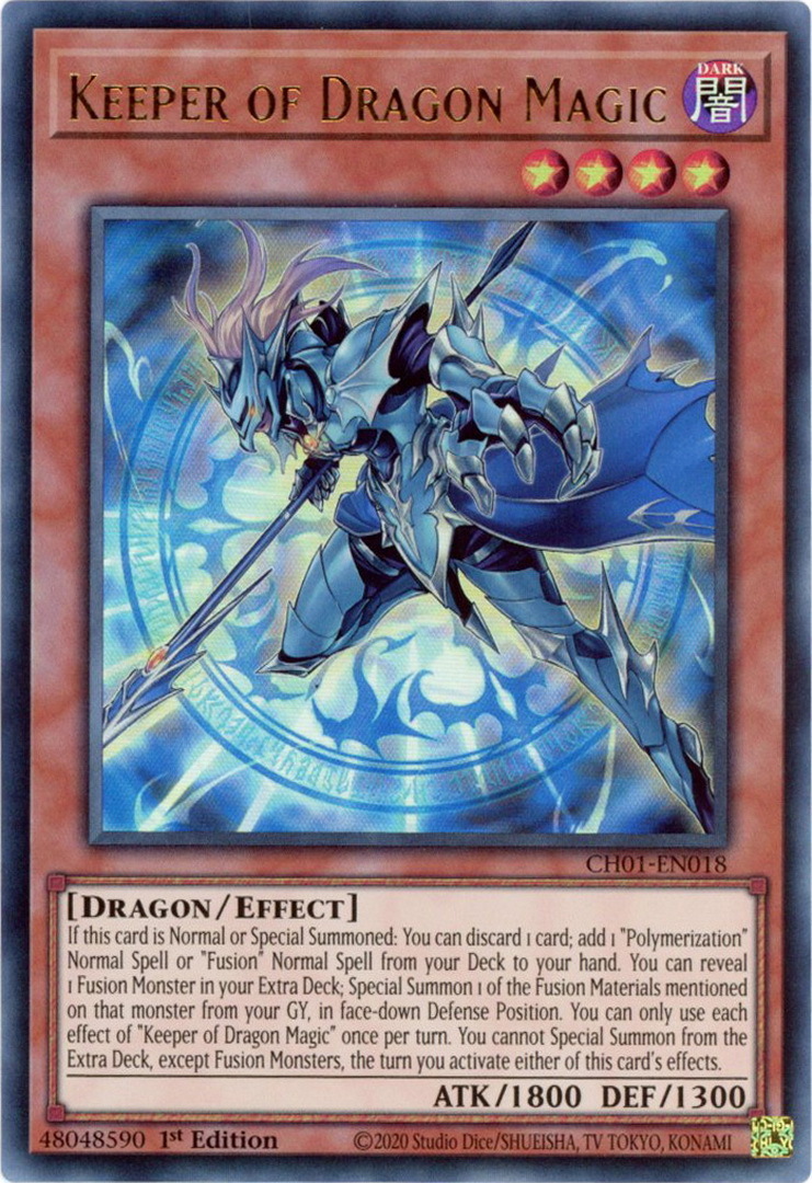 - CH01-EN018 Keeper of Dragon Magic : Ultra Rare 1st Edition Mint YuGiOh Card