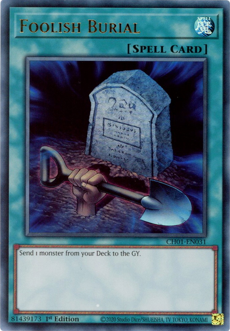- CH01-EN031 Foolish Burial : Ultra Rare 1st Edition Mint YuGiOh Card