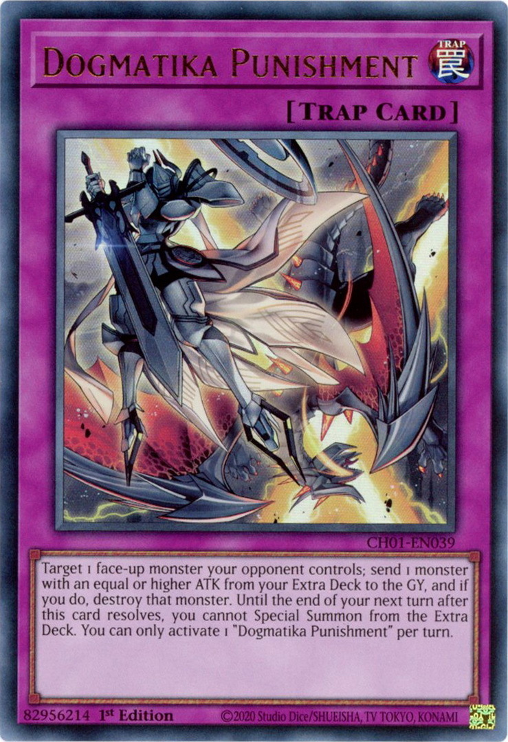 - CH01-EN039 Dogmatika Punishment : Ultra Rare 1st Edition Mint YuGiOh Card