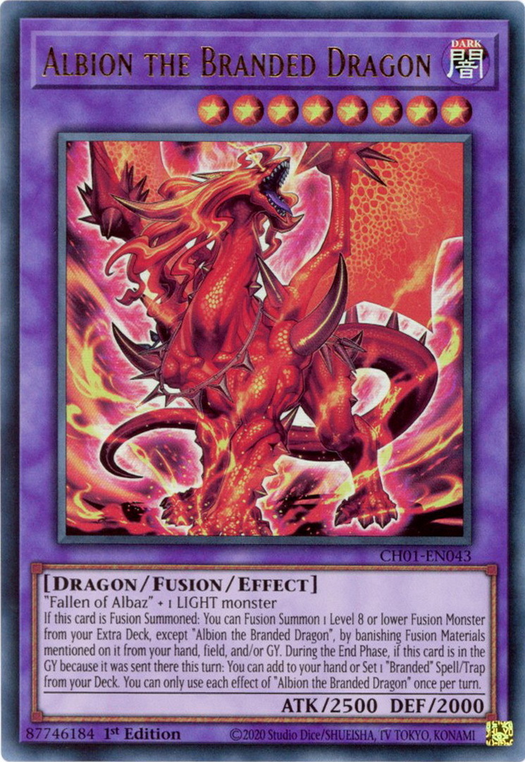 - CH01-EN043 Albion the Branded Dragon : Ultra Rare 1st Edition Mint YuGiOh Card