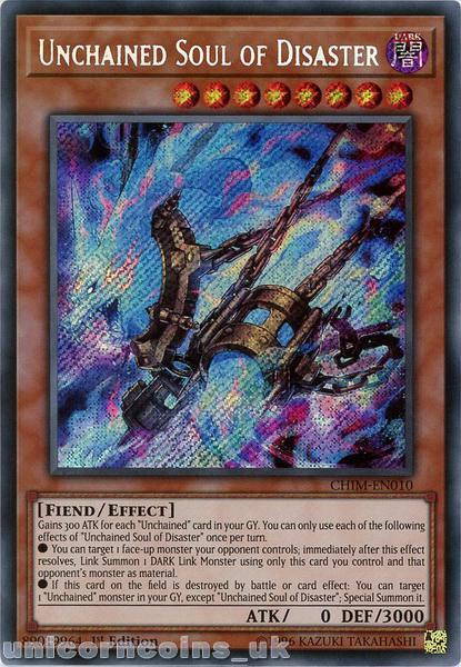 - CHIM-EN010 Unchained Soul of Disaster Secret Rare 1st Edition Mint YuGiOh Card