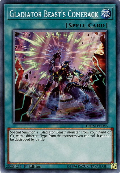 - CHIM-EN056 Gladiator Beast's Comeback Common 1st Edition Mint Yu-Gi-Oh! Card