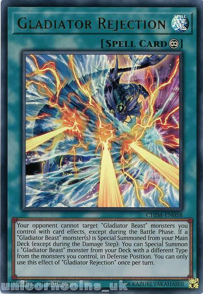 - CHIM-EN058 Gladiator Rejection Ultra Rare 1st Edition Mint YuGiOh Card