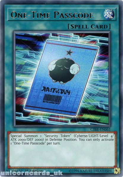- CIBR-EN061 One-Time Passcode Rare 1st Edition Mint YuGiOh Card