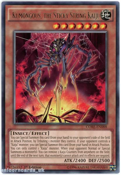 - CORE-EN088 Kumongous, the Sticky String Kaiju Rare 1st edition Mint YuGiOh Card