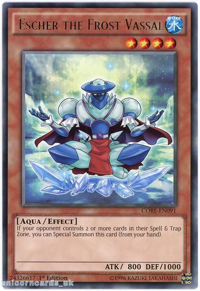 - CORE-EN091 Escher the Frost Vassal Rare 1st edition Mint YuGiOh Card