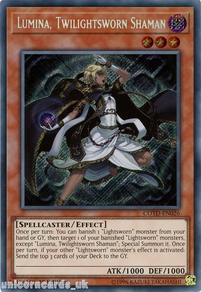 - COTD-EN026 Lumina, Twilightsworn Shaman Secret Rare 1st Edition Mint YuGiOh Card