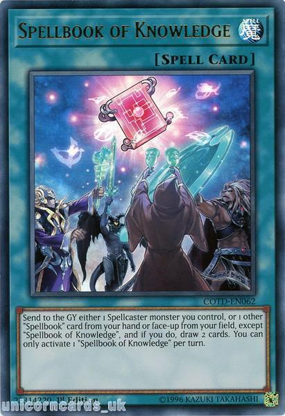 - COTD-EN062 Spellbook of Knowledge Ultra Rare 1st Edition Mint YuGiOh Card
