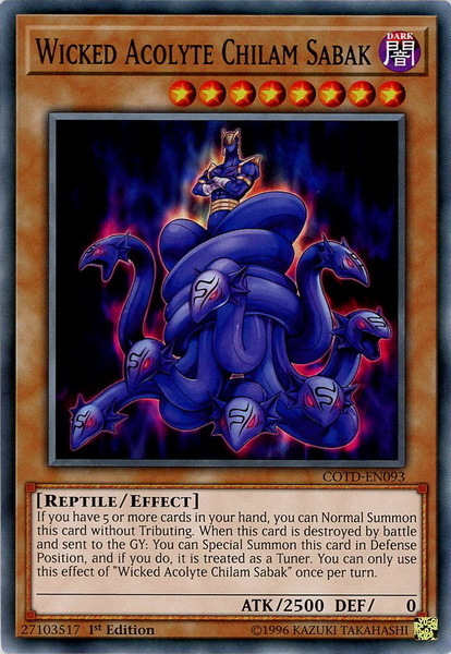 - COTD-EN093 Wicked Acolyte Chilam Sabak Common 1st Edition Mint Yu-Gi-Oh! Card
