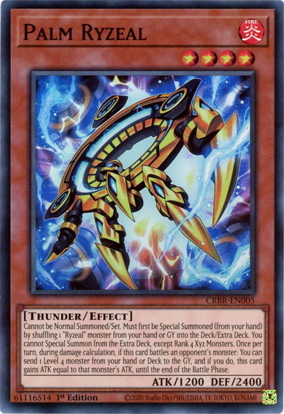 - CRBR-EN005 Palm Ryzeal : Super Rare 1st Edition YuGiOh Card