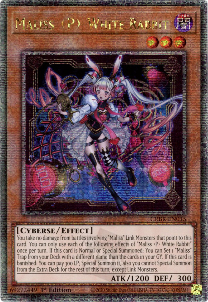 - CRBR-EN015 Maliss <P> White Rabbit : Quarter Century Secret Rare 1st Edition YuGiOh Card