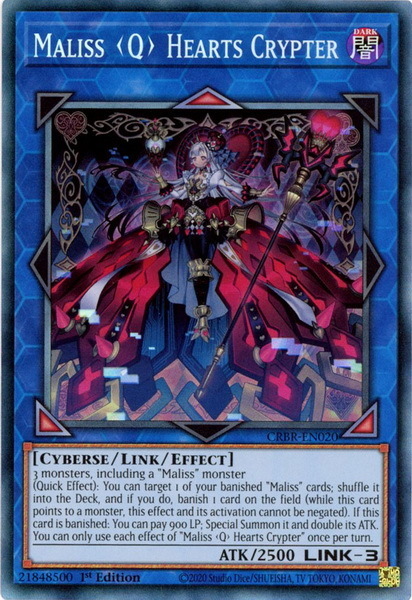- CRBR-EN020 Maliss <Q> Hearts Crypter : Collector's Rare 1st Edition YuGiOh Card