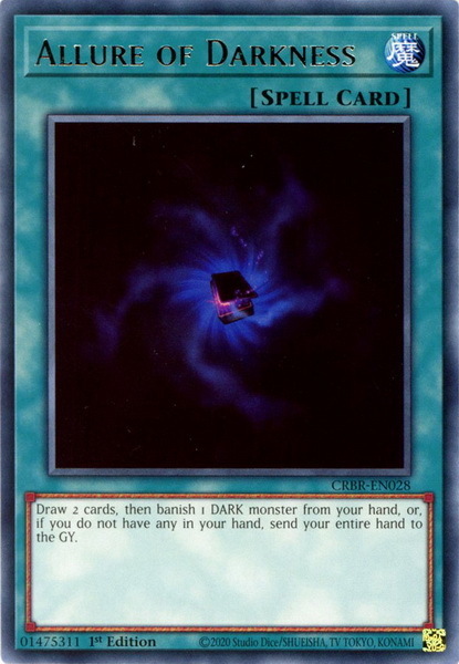 - CRBR-EN028 Allure of Darkness : Rare 1st Edition YuGiOh Card
