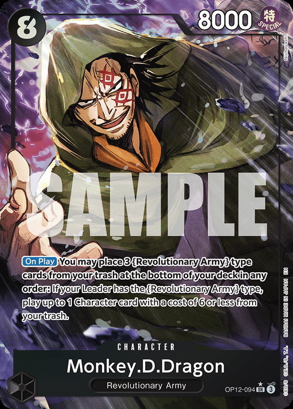 - Effect: [On Play] You may place 3 {Revolutionary Army} type cards from your trash at the bottom of your deck in any order: If your Leader has the {Revolutionary Army} type, play up to 1 Character card with a cost of 6 or less from your trash.